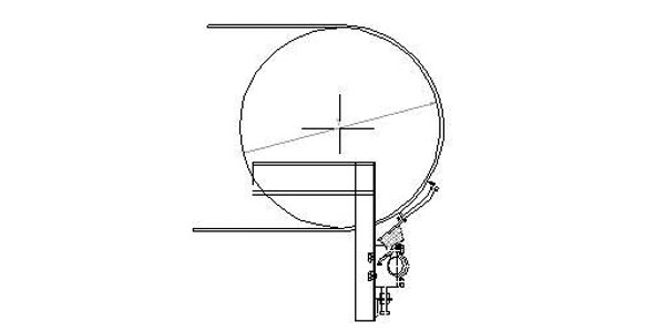 在卸載滾筒中心線偏下位置,與中心線呈15°角。